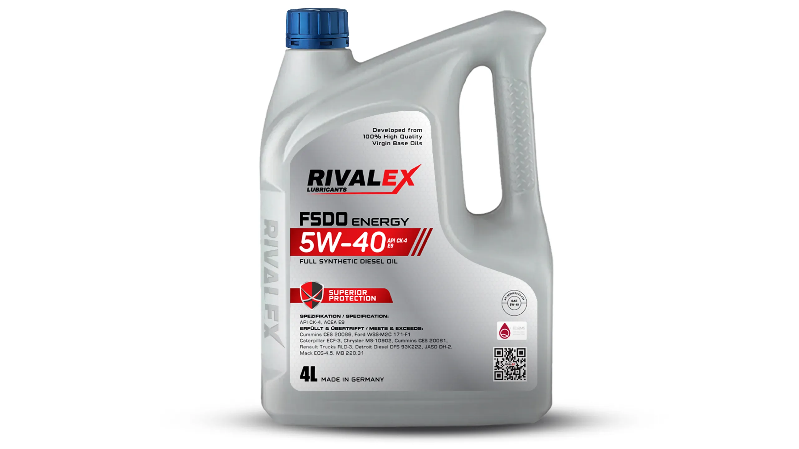RIVALEX FSDO ENERGY 5W-40 is a premium full synthetic diesel engine oil developed in Germany using 100% high-quality virgin base oils and advanced additive technology. Specially formulated for modern diesel engines operating under heavy-duty and extreme conditions, it ensures superior protection, cleaner engine performance, and extended oil change intervals.